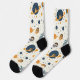 A white pattern-based sock design with space themed drawings. Great for cozy moments and sci-fi lovers.