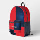Stand out with this bold and modern personalized backpack. Featuring a striking red and navy geometric design with a starry night sky, this bag combines space age style with practicality. The backpack is designed for students and adventurers who seek a cool space themed boost in the style and function of their everyday gear. Ideal for school, sports, or travel, the bag can be personalized with a name on the front pocket for the finishing touch.