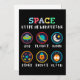 Playful space themed artwork made for curious kids and young students. Cute symbols like UFO, planet, moon, stars, rocket and alien help children explore space science and basic astronomy in a fun and friendly way.