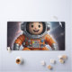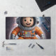 A whimsical cartoon astronaut floats through space and time, navigating a cosmic adventure. The light-colored, dotted-textured background evokes a sense of weightlessness and wonder. "Original Image was generated by Meta AI. AI generated artwork. Licensed under CC BY-SA 4.0."