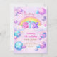 Celebrate a magical sixth birthday with this dreamy rainbow galaxy birthday invitation! Featuring sparkling pastel planets, a glowing rainbow, and playful space elements, this invitation is perfect for a fun, imaginative birthday celebration.