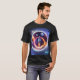 This men's dark t-shirt features a premium holographic design of a rocket in space, encapsulated within a circular image. The design showcases vibrant, high-quality details with a white border, set against a white background, offering a striking contrast on the dark fabric. Perfect for space enthusiasts and style aficionados alike.