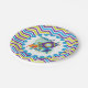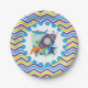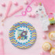 Space Ship 3rd Birthday party paper plates features a colourful design of a purple spaceship, blue stars, text that reads Wow I am 3, and chevron stripes of blue, purple, white, and spring green! Look for this same space ship design on 3rd birthday T-shirts, bags, buttons, and more!