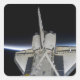 Space Shuttle Discovery intersecting the thin line of Earth's atmosphere, while docked with the International Space Station featured with STS-131.