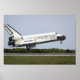 Space Shuttle Discovery approaches landing on the runway at the Kennedy Space Centre featured with tarmac.