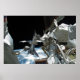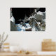 A fish-eye lens attached to an electronic still camera was used to capture this image of NASA astronaut Michael Fincke (top center) during the mission's fourth session of extravehicular activity (EVA) as construction and maintenance continue on the International Space Station. During the seven-hour, 24-minute spacewalk, Fincke and astronaut Greg Chamitoff (out of frame), both STS-134 mission specialists, completed the primary objectives for the spacewalk, including stowing the 50-foot-long boom and adding a power and data grapple fixture to make it the Enhanced International Space Station Boom Assembly, available to extend the reach of the space station's robotic arm. The docked space shuttle Endeavour is visible at left. The blackness of space and Earth's horizon provide the backdrop for the scene.