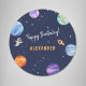Space Themed Happy Birthday Watercolor Classic Round Sticker