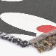 This throw blanket has a mid-century modern design of white ovals with red circles connected by white lines on a field of black. Want different colours? Message me.