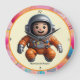 A whimsical cartoon astronaut floats through space and time, navigating a cosmic adventure. The light-coloured, dotted-textured background evokes a sense of weightlessness and wonder. "Original Image was generated by Meta AI. AI generated artwork. Licensed under CC BY-SA 4.0."