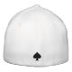 Fits well due to elastic edging, not adjustable. Good qualty material. Good quality embroidering. Subtle lettering (white on beige) just as my wife likes.