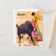 Spain postcard. Matador in Bullfighting arena with bull. Vintage postcard.