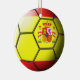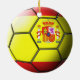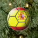 Flag of Spain embossed across a soccer ball on a two-sided ceramic ornament.