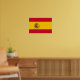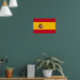 The Spanish flag has three horizontal stripes, with red at the top and bottom, and yellow in the middle. The Spanish coat of arms is displayed on the yellow stripe, towards the left of the flag. In Spanish, the flag is known as Bandera de España, or more casually as "la Rojigualda". The current version was adopted in 1981, and the flag has a 2:3 ratio.