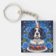 Spaniel Dog Celebrating Birthday With Festive Hat Keychain