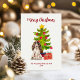 Celebrate the season with this adorable Spaniel dog holiday card! A festive green Christmas tree with ornaments, bows, and wrapped presents sets the perfect backdrop for a lifelike dog illustration. Personalize the front with your family name, your pet’s name, and the year, while the back features a charming red paw print pattern for a playful finishing touch. Perfect for dog lovers, pet parents, and families who want a unique holiday greeting that showcases their furry friend. I offer many different dog breeds in the collection below.