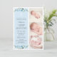 Esta invitación de bautismo con flores azules en español para niños tiene espacio por 4 fotos de su bebé y presenta hermosos ramos de flores de acuarela con vegetación botánica. El frente incluye 3 fotos, una caligrafía elegante y una simple cruz cristiana y los detalles de su evento escritos en una tipografía serif vintage en un tono súper elegante de gris carbón. En la parte de atrás hay espacio para otra foto, que está enmarcada por más flores de acuarela, vegetación botánica y una cruz, así como un versículo de la biblia, que puedes cambiar a lo que prefieras. El reverso de la invitación puede enmarcarse después de su evento y guardarse como un recuerdo especial de la ocasión. Diseñado como parte de mi elegante colección Blue Powder para bebés y niños, asegúrese de explorar los otros artículos de la suite para crear un estilo elegante y coordinado para su bautizo. Si necesita ayuda para personalizar esta invitación o desea que cree elementos adicionales que coincidan, comuníquese conmigo (Dawn) en admin@albamarie.com. ¡Estaré feliz de ayudar! Para cambiar las fuentes o los colores o cambiar la posición de los cuadros de texto, desplácese más allá de estos cuadros de texto y haga clic en "Edit using design tool". Si necesita ayuda adicional para ajustar esta plantilla, aproveche el servicio gratuito de Zazzle en https://www.zazzle.com/live o comuníquese conmigo a través del sistema de mensajería de Zazzle. Tenga en cuenta que yo creo los diseños, pero Zazzle los imprime y los envía desde sus instalaciones de producción, por lo que si hay algún problema con su pedido, comuníquese con su servicio de atención al cliente al 1-888-892-9953 o https:// www.zazzle.com/about/ask. This blue, floral, multiphoto Spanish baptism invitation for boys features beautiful bouquets of watercolor flowers with botanical greenery. The front includes 3 photos, elegant calligraphy script and a simple Christian cross and your event details written in a vintage serif typography in a super chic shade of charcoal grey. On the back there is room for another photo, which is framed by more watercolor flowers, botanical greenery and a cross, as well as a bible verse, which you can change to anything you prefer. The back of the invitation could be framed after your event and kept as a special memento of the occasion. Designed as part of my stylish Blue Powder collection for babies and kids, be sure to browse the other items in the suite to create a chic, coordinated look for your christening. If you need assistance customizing this invitation or would like me to create additional, matching items, please contact me (Dawn) at admin@albamarie.com. I'd be happy to help!