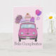 Spanish Birthday card. A retro Fiat 500 in watercolor. Espero que todos tus deseos se cumplan. ¡Muchas felicidades!