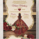 Spanish Burgundy Floral Rustic Wood Mis Quince All In One Invitation