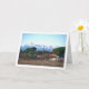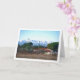 Spanish Chalet and Snowy Mountains Greeting Card. You can easily customise this product for free if you would like to add wording or change the colour of the background.