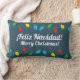 A fun Christmas pillow design in Spanish and English. It says "¡Feliz navidad!" and "Merry Christmas." The design is very festive with Christmas lights.