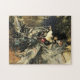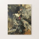 Giovanni Boldini Spanish Dancer at the Rouge puzzle. Oil on canvas from 1905. Italian artist Giovanni Boldini was a master portraitist. One of his most beautiful and visually arresting portraits depicts a Spanish dancer at the rouge. The woman sits in her chair with her head turned to the side. She wears a daring black and blue dress with laces up the sleeves and a big red corsage and black feather hat. A beautiful gift for fans of Giovanni Boldini, the Rouge, and dance paintings, and vintage prints.