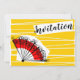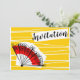 Whimsical design drawn in a retro style featuring a lacy fan souvenir from a Spanish holiday on a golden yellow and white background. A customizable design in black, white, red and golden yellow for you to personalise with your own text, images and ideas. An original digital art image.