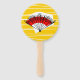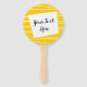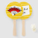 Whimsical design drawn in a retro style featuring a lacy fan souvenir from a Spanish holiday on a golden yellow striped background. A customizable design in black, white, red and yellow for you to personalise with your own text, images and ideas. An original digital art image.