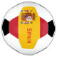 Soccer ball with one side of the ball done in the red and yellow colours of the Spanish flag, and decorated with the coat of arms. Red text reads Spain and can be personalized to read what you want.