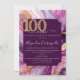 Celebrate a century of life with grace and elegance with our exquisite invitation for a 100th birthday. Designed with sophistication, this invitation features the timeless beauty of agate in stunning shades of purple, pink, and gold, framed by a deep burgundy border. The number “100” shines with golden glitter, beautifully complemented by the word “Hundred” in elegant handwritten calligraphy.