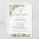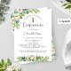 Elegant Confirmation invitation in Spanish, with exquisite watercolor greenery floral details and modern hand written calligraphy elements in both front and back. Gender Neutral invitation, ideal for both girl or boy confirmation. Back with corner modern logo style frame with your child's confirmation date and name. Greenery foliage and flowers in a beautiful blend of green, white, yellow, grey and gold hues. Elegant, modern and fresh style. Same design also available in English.