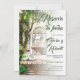 Our save the date card features a stunning illustration inspired by Mexican haciendas, and is written in the Spanish language. It showcases a serene fountain with two white doves perched gracefully on the stone. The backdrop of a lush hacienda patio and the timeless typography evoke a sense of elegance and Mexican colonial architecture, striking a perfect balance between tradition and modern sophistication.