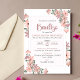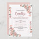 This Baptism invitation for a baby girl showcases a boho-inspired design with beautiful pink flowers and a Catholic touch.