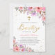 Modern, elegant girl Bautizo Invitation featuring pink & bright purple floral arrangements , elegant gold cross, typography script Baptism in trendy lettering. To edit this template click customize further.