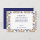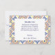This Mediterranean Inspired Wedding RSVP features a flamboyant and stylish traditional Spanish tile borders in yellow and navy blue.