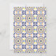 This Mediterranean Inspired Wedding invitation features a flamboyant and stylish traditional Spanish tile background in yellow and navy blue on the back of the card.