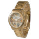A very elegant wristwatch with a Spanish theme. The illustration on the watch face depicts a landscape with windmill, along with oranges on leafy boughs, and traditional fans.