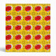 Whimsical design drawn in a retro style featuring a red rose souvenir from a Spanish holiday on a golden yellow background. A customizable design in black, white, red and yellow for you to personalise with your own text, images and ideas. An original digital art image.