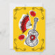 Whimsical design drawn in a retro style featuring souvenirs from a Spanish holiday; a wrought iron guitar, lacy fan and red rose. A customizable design in black, white, red and golden yellow for you to personalise with your own text, images and ideas. An original digital art image.