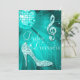 Invitaciones personalizadas y elegantes para fiestas de cumpleaños Sweet 16 para chicas. Hermosas invitaciones de doble cara Sweet Sixteen en tonos teal y blanco para adolescentes, con una divertida bola de discoteca retro, imágenes impresas glamorosas con purpurina de strass, lentejuelas, joyas que brillan, zapatos de tacón stiletto, y notas musicales brillantes/símbolos musicales con destellos sobre un fondo vibrante de luces turquesa y destellos. Invitaciones chic, elegantes, lindas, femeninas y modernas, con colores de moda y actuales. Estas invitaciones geniales, estilizadas, sofisticadas y bonitas están decoradas/impresas en ambos lados. Invitaciones perfectas para un evento de cena y baile. NOTA: Todas las invitaciones en Zazzle tienen imágenes impresas planas. Si necesita ayuda para personalizar su producto, por favor contácteme a través de mi tienda y estaré encantado de ayudarle.