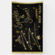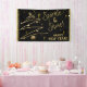 A Modern Gold and Black, Happy New Year Hanging Banner with text: Sparkle & Shine designed for your Holiday New Years Eve Party. Designed on a black background, with gold coloured Christmas Tree, Snowflakes and Stars. Available with matching party accessories. This Banner is also available in Gold and White.