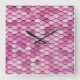Sparkle Glitter Pink Purple Mermaid Scales Square Wall Clock