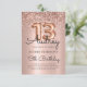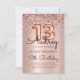 Sparkle Glitter Rose Gold Balloon 13th Birthday Invitation