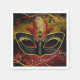 Red & Gold Masquerade Napkin. Elegant feather mask with sparkle dust & pearls.