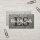 These elegant business cards feature a silver glitter. Your name appears in trendy handwritten script typography. There is also room to include your social media information on the back.