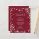 Snowflakes avec une touche de menu de mariage d'hiver bordeaux brillant avec texte personnalisé et option de changement de couleur disponible à l'avant et à l'arrière selon les besoins.