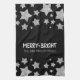 Sparkle Star Merry bright Christmas silver black Kitchen Towel