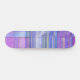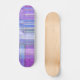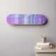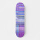 Digital abstract pattern filled with blues and purple and pink. A skateboard for the ladies!