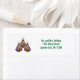 Modern Christmas address labels with my design of three bright Christmas trees covered in colourful lights and topped with shining stars.