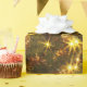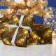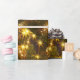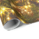 "Merry Christmas and a Happy New Year" - glamourous holiday wrapping paper with golden Christmas baubles, sparkling lights, pine cones and Christmas tree branches.