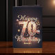 Celebrate seven remarkable decades with this beautifully crafted greeting card. It has a dark background with a sparkling, glittery design that gives it an elegant and festive feel. The text reads "Happy 70th Birthday" and a placeholder name in a mix of cursive and bold fonts, with the number "70" prominently displayed in the centre. The number has a shiny, reflective pattern, making it stand out. Surrounding it are decorative elements like stars, musical notes, and light reflections, adding to the celebratory atmosphere. The front and inside text are fully customizable, allowing you to personalize every detail. Need it quickly? Opt for an instant digital download for easy sharing. Make their 70th birthday truly unforgettable with a card as unique as their journey.
